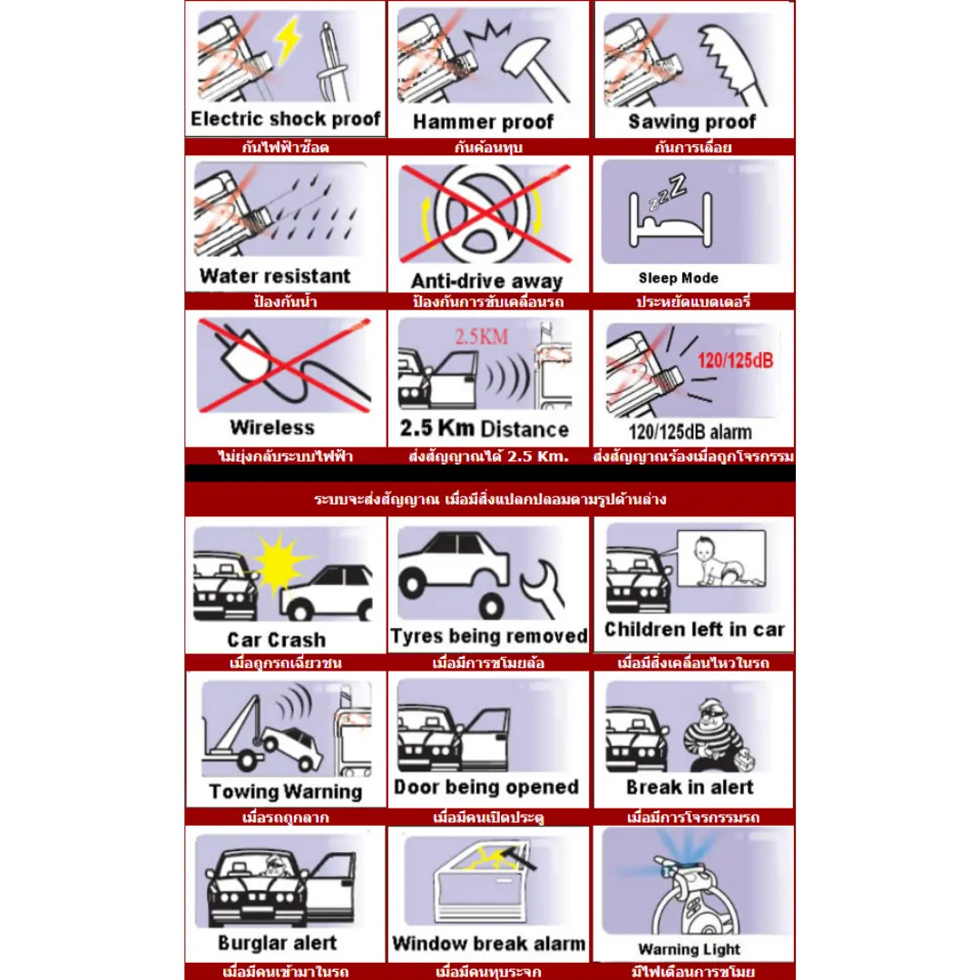 5. ระยะทางการส่งสัญญาณเตือนภัย จาก ที่ล็อคพวงมาลัย ถึงเจ้าของรถ สามารถส่งถึงได้2.5 Km เจ้าของรถสามารถนอนหลับได้อย่างสบายใจ ไม่ต้องห่วงเรื่องการโจรกรรม