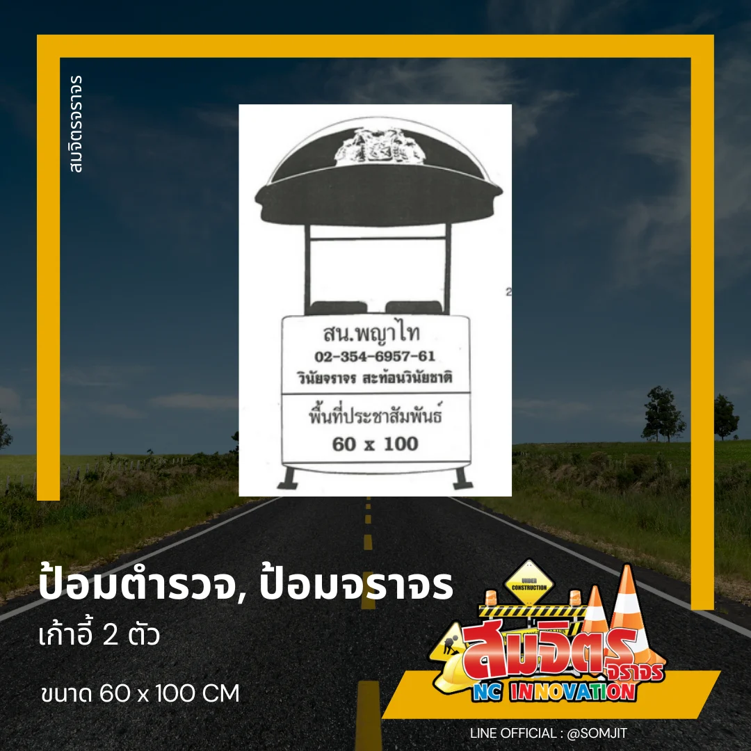 - ตัวป้อมป้อมตำรวจ, ป้อมจราจร จัดทำด้วยไฟเบอร์กลาส หลังคาจำลองเป็นรูปหมวกจราจร มีเก้าอี้ 2 ที่นั่ง