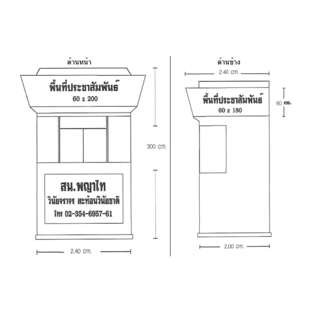 - มีหน้าต่างด้านหน้า 1 บาน ส่วนบนมีพื้นที่ประชาสัมพันธ์ 3 ด้าน