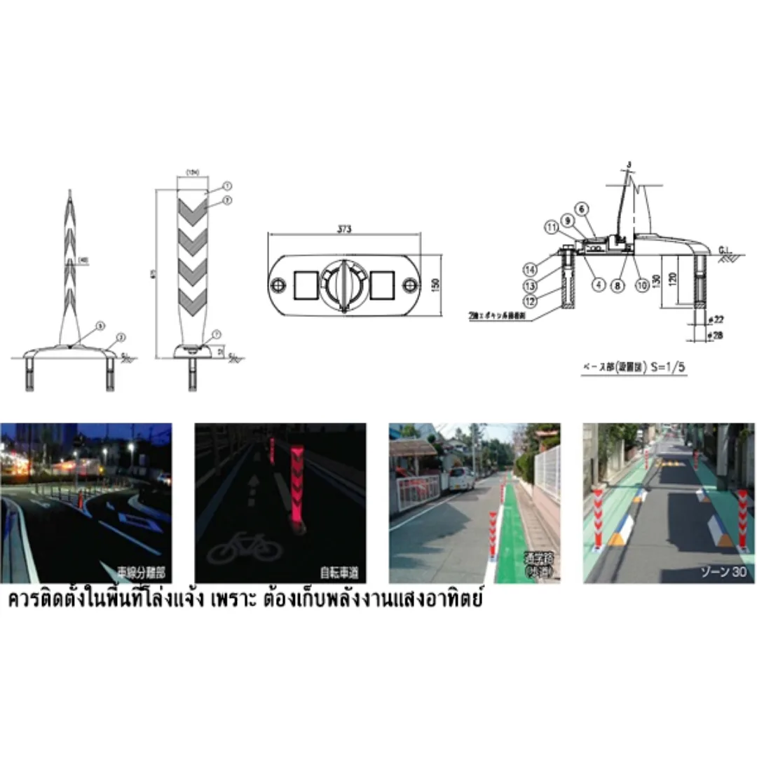 | รายละเอียด เสาเเบ่งเลนจักรยาน พลังงานแสงอาทิตย์ | |