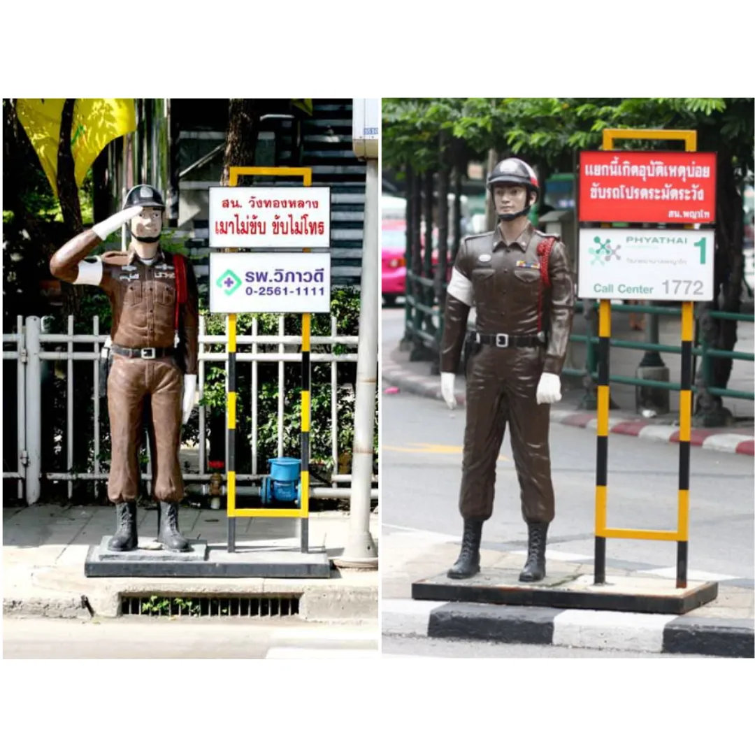 หุ่นจราจร : สูง 180 เซนติเมตร ฐานปูนสูง 10 เซนติเมตร