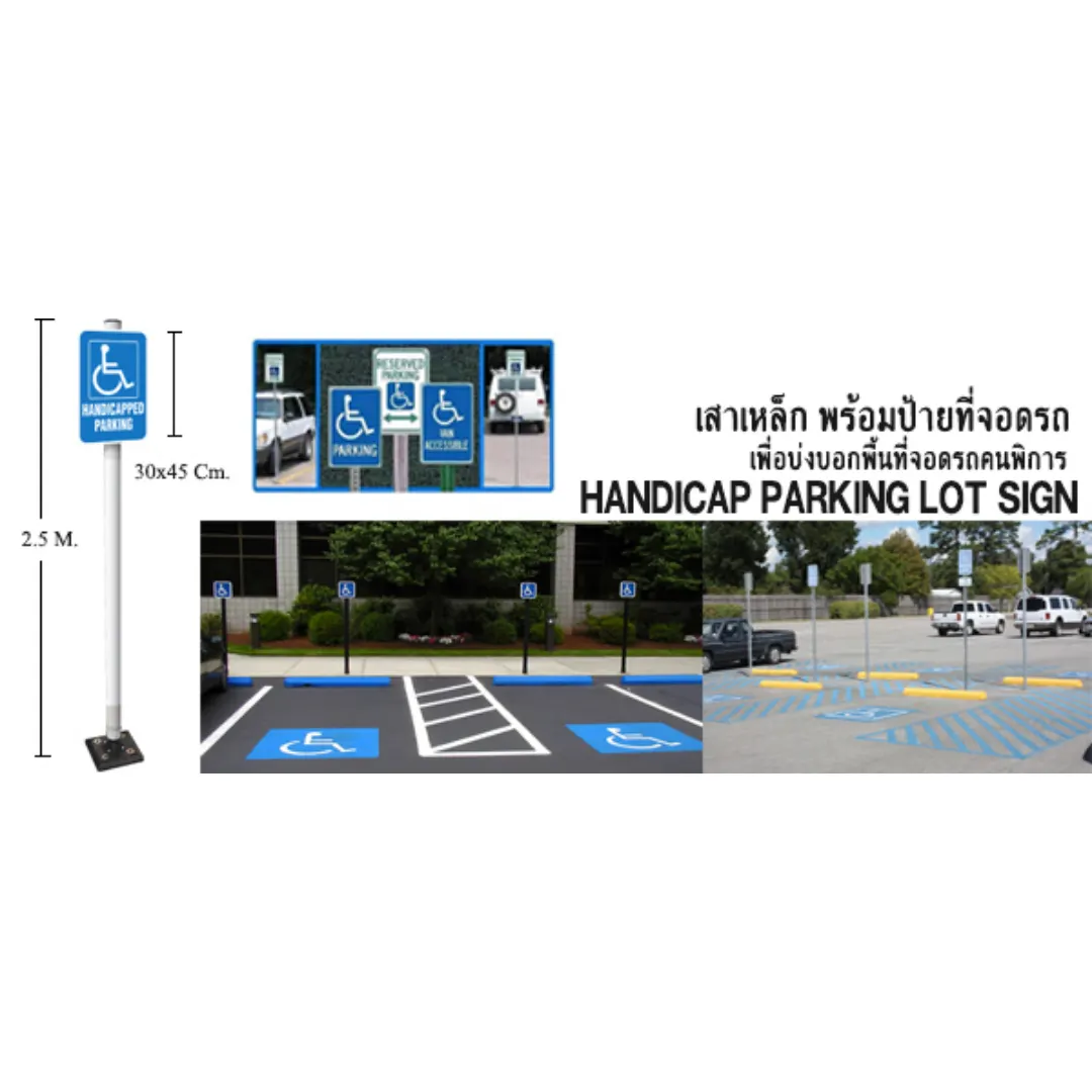 • ป้ายที่จอดรถคนพิการ จะมีขนาดมาตรฐาน 30×45 Cm. และ 60×45 Cm. วัสดุจะเป็นป้ายอลูมิเนียม 1.2mm. ติดด้วยสติ๊กเกอร์สะท้อนแสง 3M