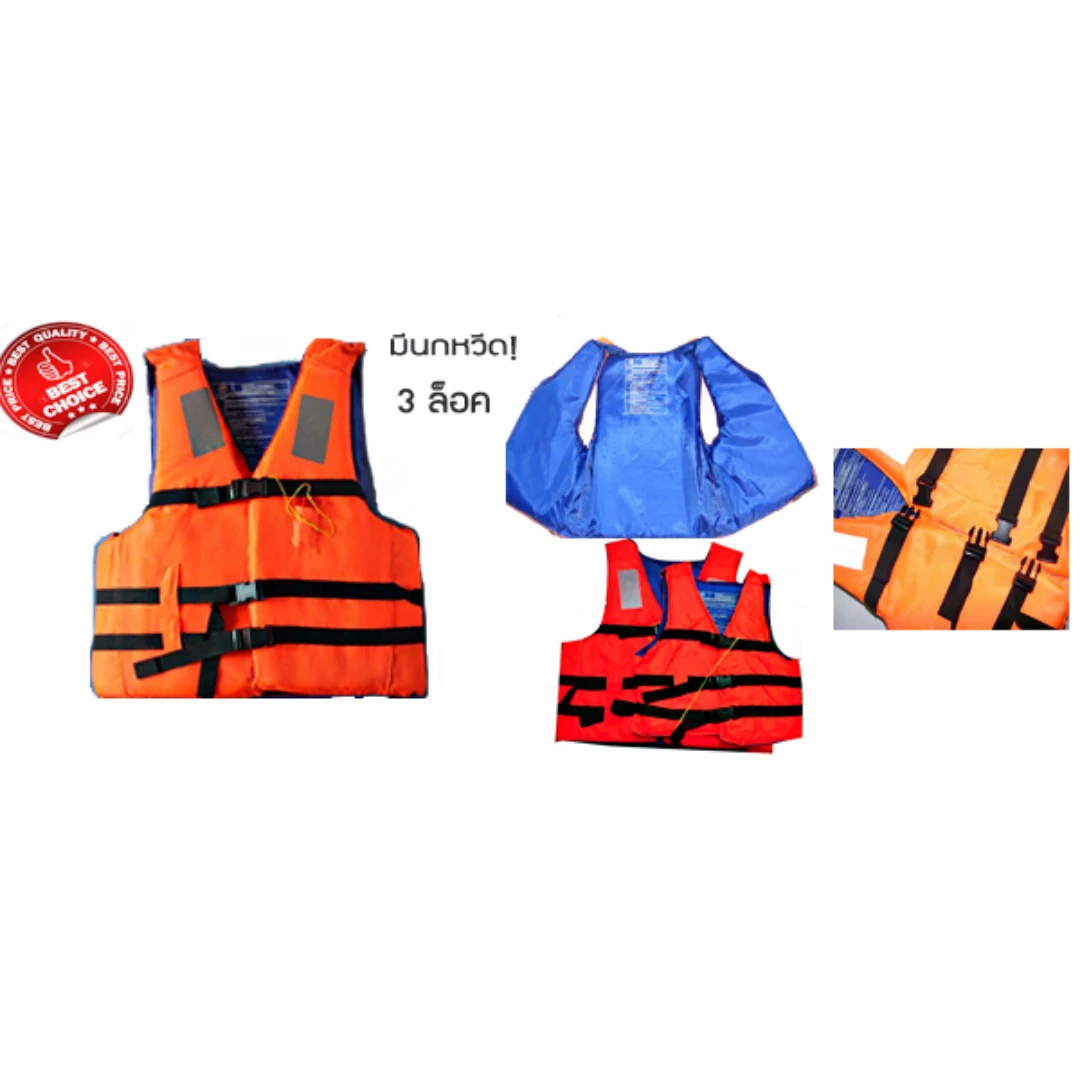 | NC-LV01-A | เสื้อชูชีพ สะท้อนแสงแสงที่หน้าอก พร้อมนกหวีด ตัวล็อค 3 จุด (Free Size) ของผู้ใหญ่ |