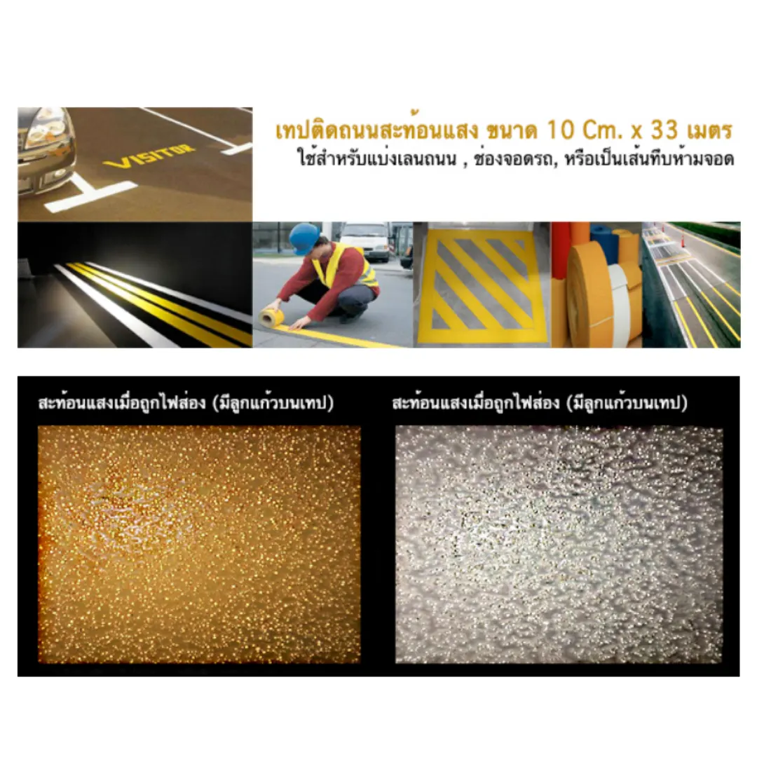 ขนาด 10 ซม. x 33 เมตร / สำหรับใช้แบ่งเลนถนนหรือตีช่องจอดรถ |