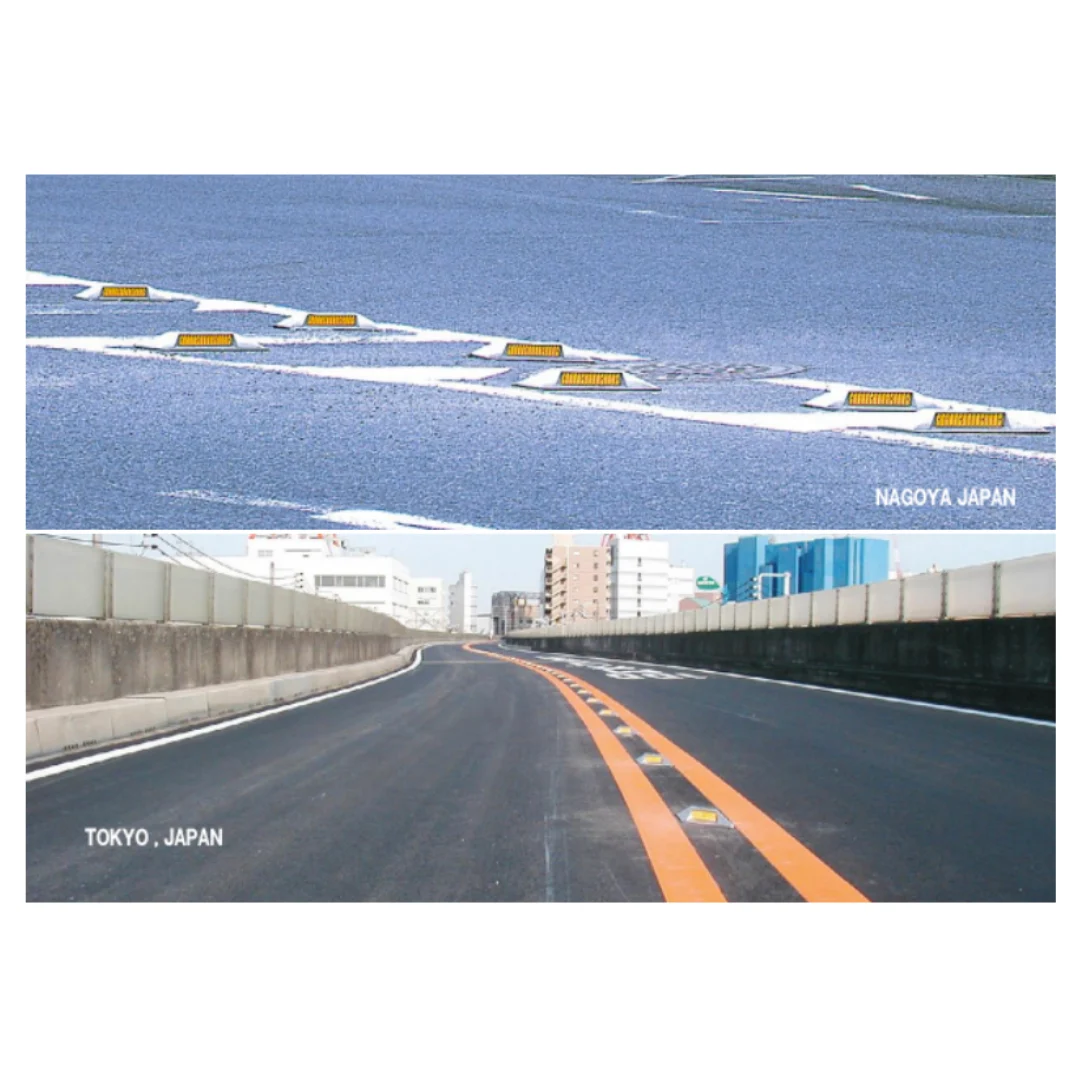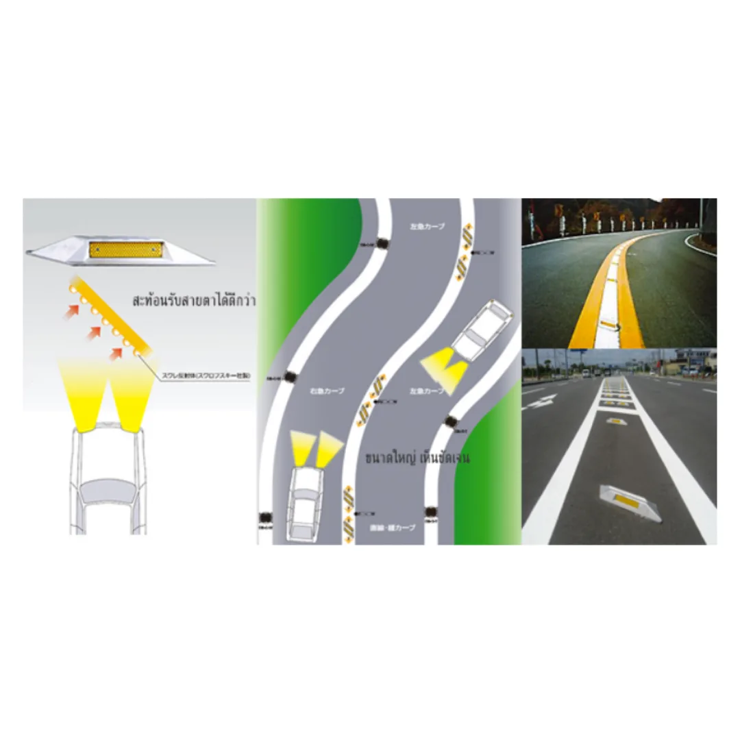 • หมุดถนนทำมุมเอียงรับ 45 องศา เพื่อสะท้อนในระดับสายตาได้ดี