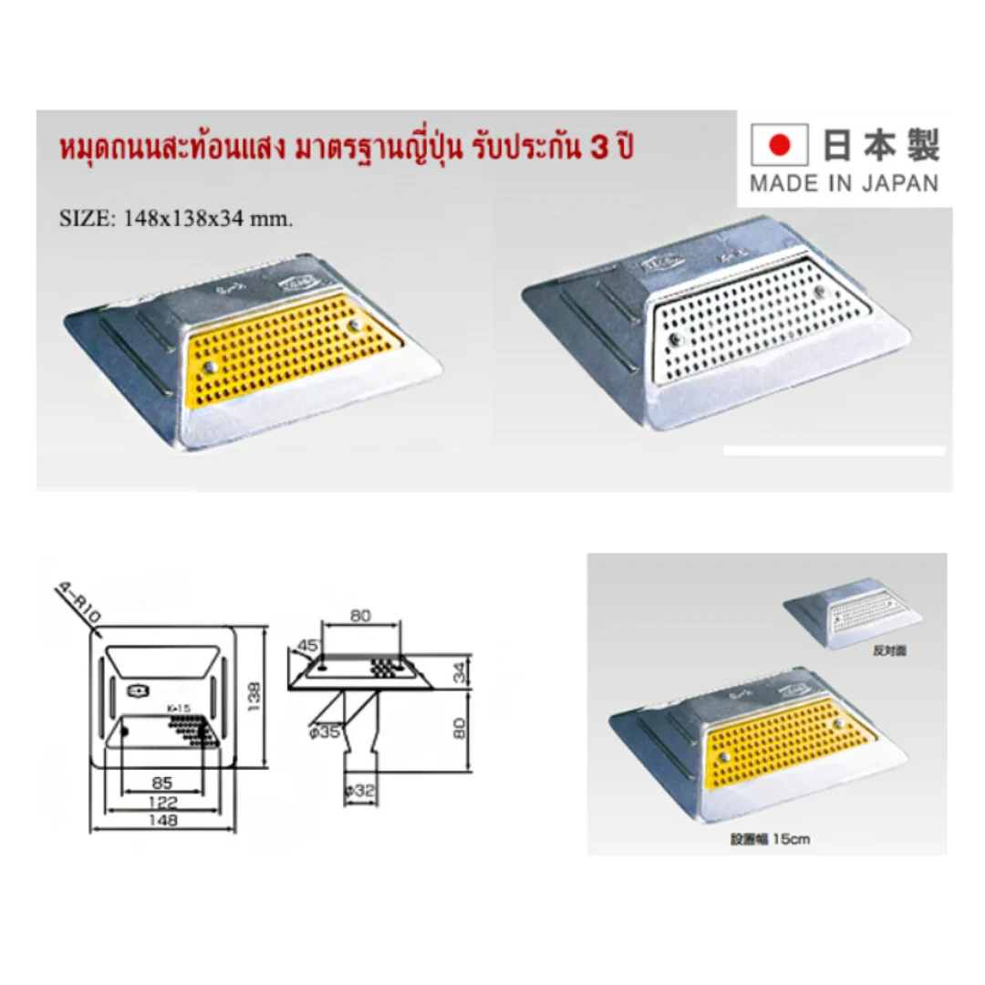 | NC-RD-K15Y | หมุดถนนสะท้อนแสง 2 หน้า สีเหลือง มาตรฐานญี่ปุ่น