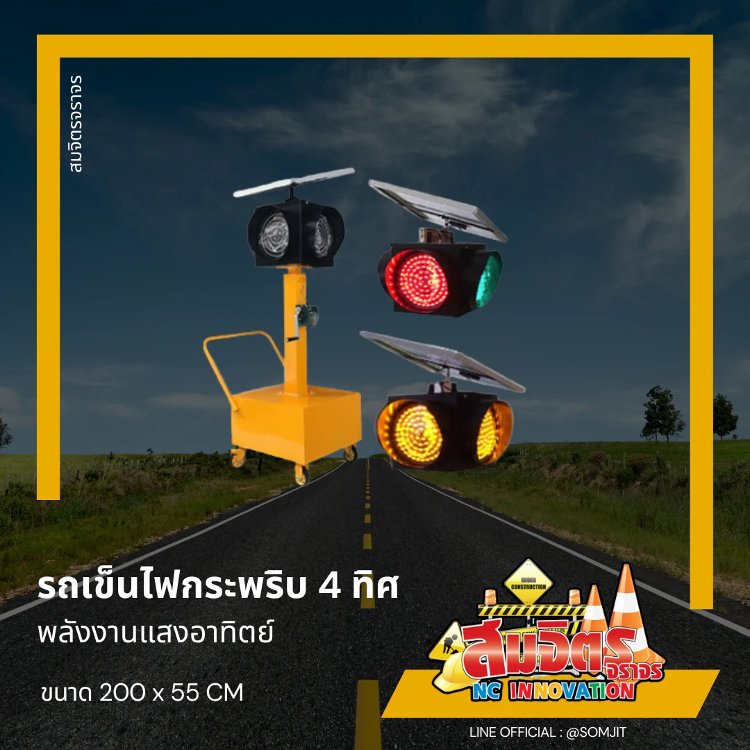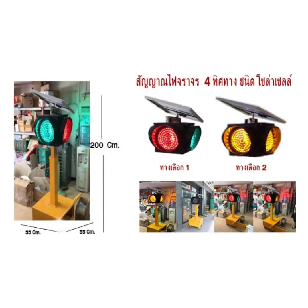 - สัญญาณไฟจราจร ชนิดเคลื่อนย้ายได้ ชนิดโซล่าเซลล์ 4 ดวงโคม ขนาด 200×55 Cm. (Movable Solar Traffic Light)