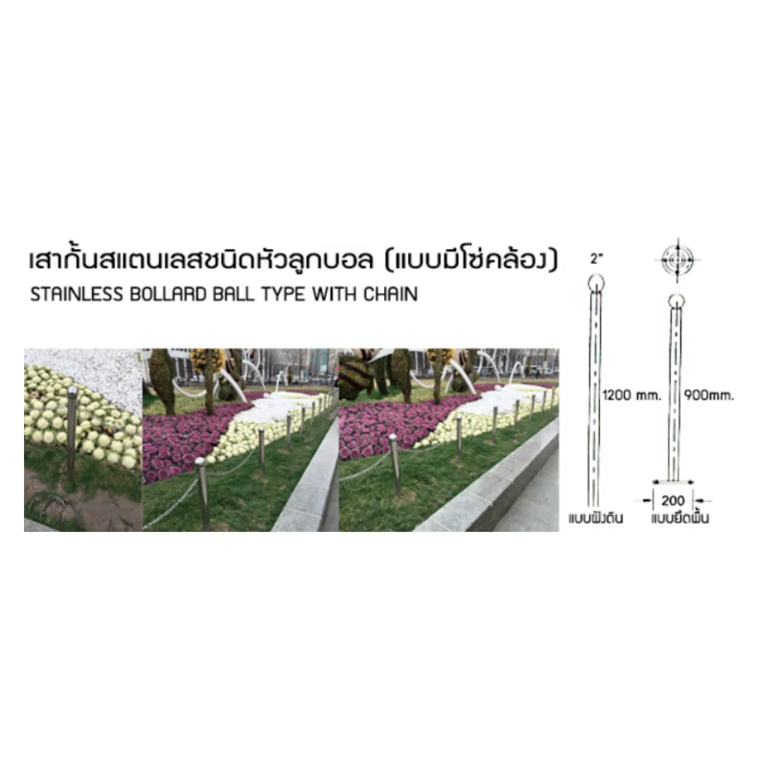 วัสดุสแตนเลสเกรด 304 : สามารถคล้องโซ่ได้ เพื่อกั้นพื้นที่ ความสูง 90 Cm. จากพื้นดิน