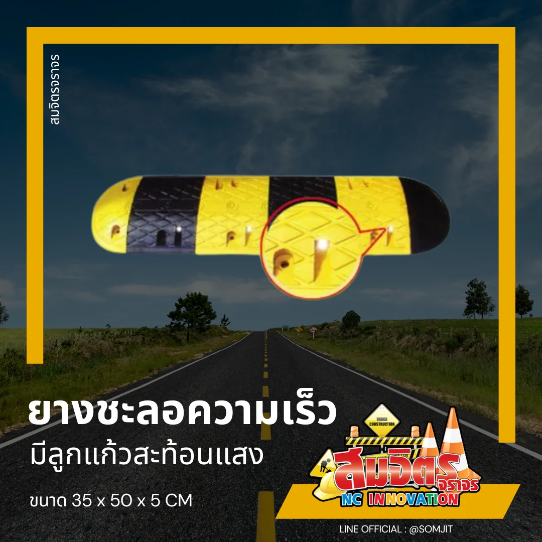 ยางชะลอความเร็ว สีดำ ขนาด 35 x 50 x 5 CM พร้อมลูกแก้วสะท้อนแสง |