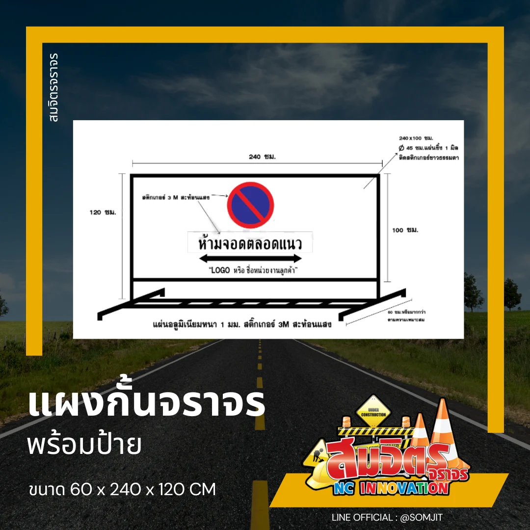 • แผงกั้นจราจรสีทำ (สามารถเปลี่ยนได้)